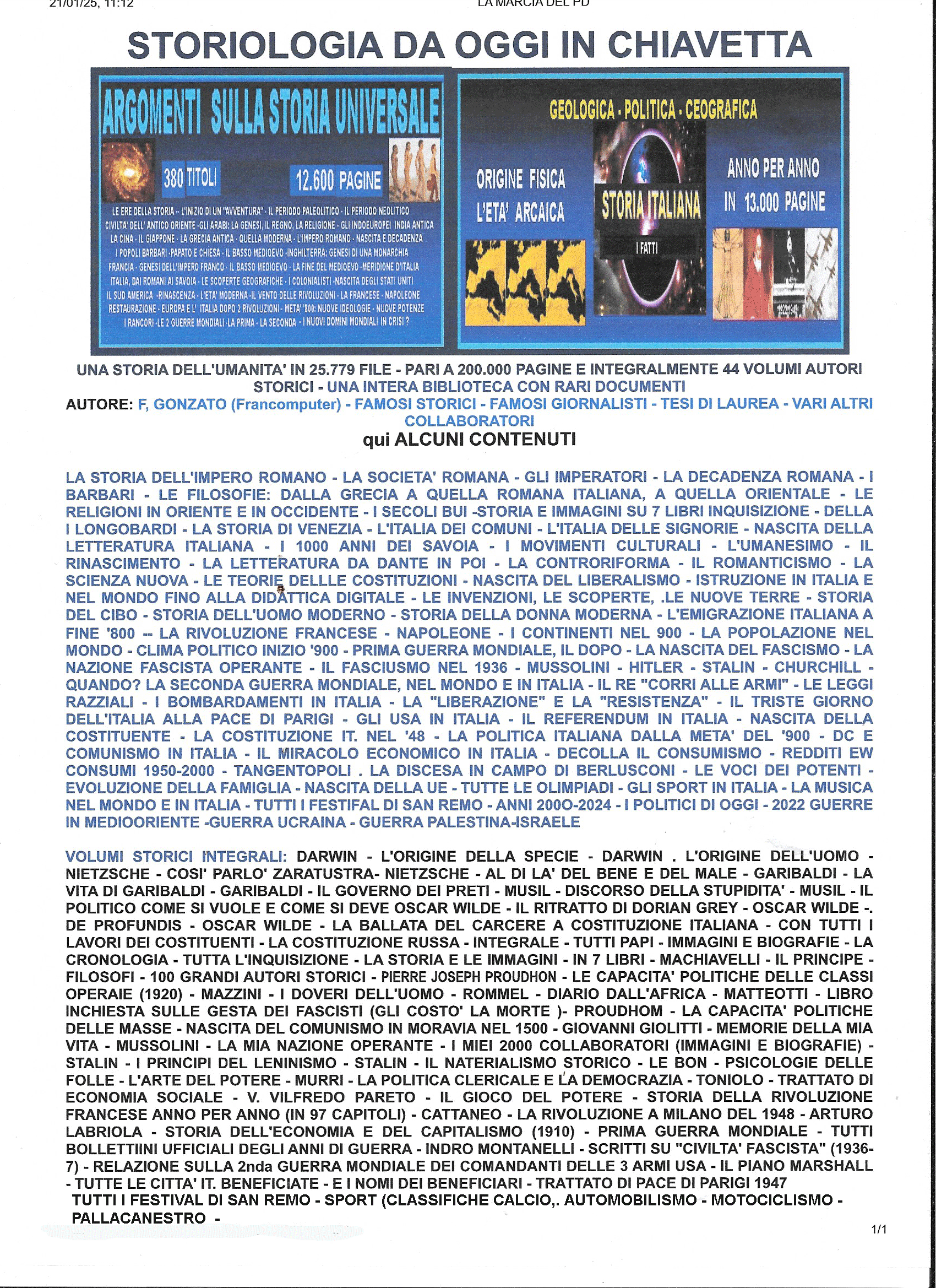 FRANCO GONZATO - e-mailstoriologia@storiologia.it