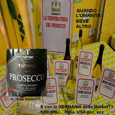 Che bella fregatura !! Noi con le sanzioni (imposti alla UE dagli USA) non possiamo vendere in Russia il Prosecco (e loro subito ne hanno fatto una imitazione: il TAIPORO, (https://www.vvox.it/2015/03/11/prosecco-tarocco-spopola-in-russia/ dichiarandolo in "Stile Italiano") mentre gli stessi Usa in Russia sono diventati sponsor della Fifa con la Coca Cola. (Patrimonio dell'umanità anche questo?!!!). Infine dagli USA in rete ci sono i “wine-kit”, “Vino in polvere” (ma non ancora "patrimonio dell'Umanità") per Chianti, Valpolicella, Frascati, Barolo, Lambrusco o Montepulciano ecc.