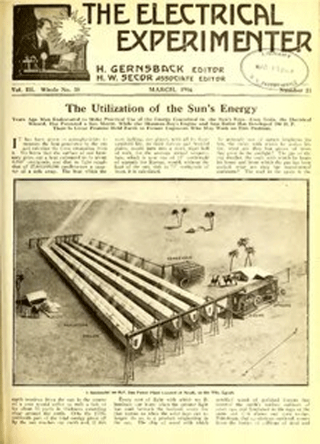 Ma vi fu anche un impiego in una prima centrale a energia solare nel 1912-1913 a Maadi in Egitto. L'impianto purtroppo ebbe vita breve. La scoperta di come estrarre il petrolio a basso prezzo la mandarono in rovina. Frank Schuman l'ingenere che l'a vaeva costruita, disse - e fu profetico - "una volta esaurite le nostre scorte di petrolio o carbone, la specie umana potrà ricevere energia illimitata dal Sole".