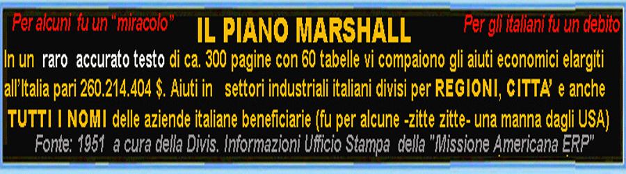 L'autore, LUCA LAMACCHIA, questo interessante lavoro ce lo ha inviato e presentato come un "umile riassunto di ricerche". L'autore di "Storiologia" invece, lo ritiene un lavoro importante per la conoscenza dei fatti, anche perchè scarseggia materiale in lingua italiana sull'argomento. Nessuno studioso italiano di cui sia venuto a conoscenza ha scritto (almeno in italiano) alcun libro sul piano Marshall, ad esclusione di quelli relativi a qualche effetto di quest'ultimo sul nostro paese. Carenza forse comprensibile, perché nell'impostazione di questi studi, deve essere sottolineata la complessità di motivazioni e di obiettivi politici ed economici che furono alla base di questo programma di aiuti. (ATLANTISTI, UTILI MA NON CERTO DISINTERESSATI )))) !!!!!!!!