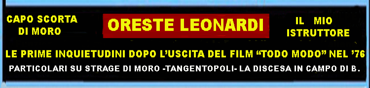 dunque il film fu una profezia? Giudicate voi!Ritorno a Leonardi e come già accennato - al tempo di quel fortuito nostro incontro - era diventato da un po' di tempo proprio l'uomo di scorta di Moro. Che indubbiamente una volta conosciuto Oreste, MORO lo volle sempre accanto a se.