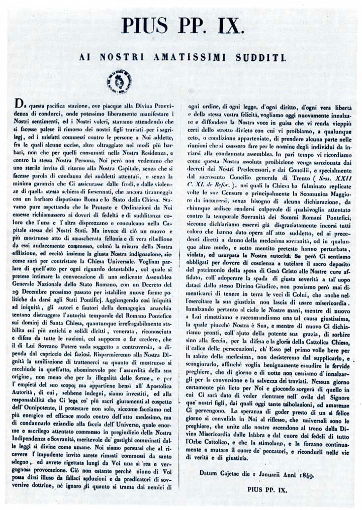 MOTU PROPRIO DI PIO IX (1° GEN. 1849)