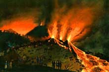 il Vesuvio rimasto pressoché inerte per alcuni secoli si era per la prima volta già risvegliato il 16 dicembre 1631 provocando più di 4.000 vittime e la distruzione di quasi tutti i paesi ubicati lungo le sue falde. Negli anni successivi il vulcano mantenendosi sempre in attività entrò in fasi eruttive più o meno violente negli anni 1660, 1682, 1685 ed ancora una volta in questo periodo, nel 1689.Cinque anni dopo, nell’ aprile 1694 il Vesuvio si scosse nuovamente; una bocca lavica si aprì verso Torre del Greco, il magma uscì a fiumi formando in pochissimo tempo numerose lingue di fuoco che, scendendo in direzioni diverse lungo le falde del vulcano, investirono e distrussero quanto incontrato lungo il loro percorso. Pietre e lapilli poi, lanciati verso l’alto, nel ricadere raggiunsero, come avvenuto più volte, sia le zone abitate dell’area vesuviana sia le province del circondario. Fumo e fiamme oscurarono il cielo, ceneri e lapilli si sparsero dappertutto raggiungendo anche Benevento mentre rivoli di lava scesero verso il mare incendiando le falde della montagna.Per ridurre i danni e preservare case e proprietà terriere alla colata lavica, furono fatte pressioni sul vicerè chiedendogli di inviare immediatamente uomini e materiali con lo scopo di arginare la colata. Squadre di soccorso si misero quindi al lavoro creando sbarramenti di contenimento per canalizzare il magma tentando così di dirottarne il flusso verso il mare. L’esperimento effettuato con l’intima speranza di conseguire il risultato, sull’esempio di quello ottenuto in Sicilia qualche anno prima, non ebbe però particolare successo. L’eruzione proseguì quindi nel suo corso mentre il progredire del fronte lavico, oltre che dai fedeli in processione, fu osservato anche da molti curiosi che avvicinandosi per quanto possibile alle zone coinvolte intasarono strade e sentieri. Nel maggio, le colate non più alimentate si arrestarono mentre gli incendi provocati dalla massa lavica incandescente continuarono ad ardere per qualche settimana. Il Vesuvio tornò tranquillo, ma solo per poco tempo. Infatti nel 1698, un’altra eruzione che durò oltre venti giorni arrecò nuovi danni a persone e cose.3.9.2 - Terremoto in Irpinia e Basilicata