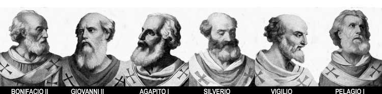 BONIFACIO II, romano (530-532)Già consacrato dal suo predecessore con il conferimento del proprio "pallio" (nda: letteralmente mantello, che nel medioevo si trasformerà in sinonimo di stendardo), l'arcidacono Bonifacio II, nativo di Roma fu eletto il 22 settembre del 530, ovvero lo stesso giorno della morte di San Felice IV, suo predecessore.